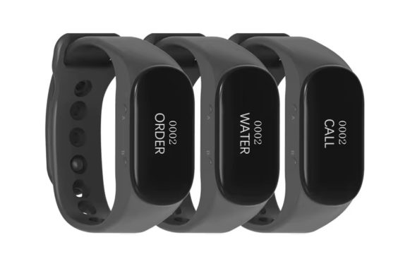 Los camareros llevan un reloj receptor que vibra y muestra el número de la mesa que necesita atención. - Sin WiFi ni Apps: